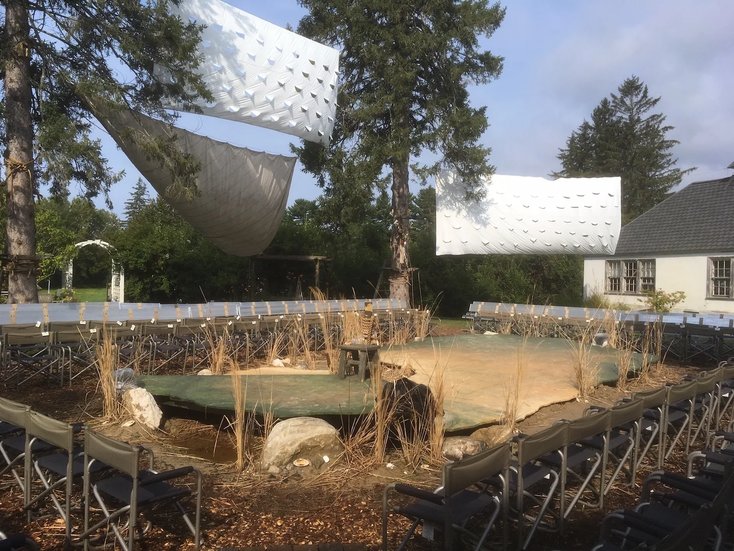 This production of The Tempest was the first show presented in Shakespeare & Company’s Roman Garden Theatre - an intimate outdoor venue seated in the round. Conceptually, the production set the story in the 1890s and used the islands off the coast of Nova Scotia as a reference. The overall design of the show involved embracing the natural space as part of the world of the show including the trees, bushes, nearby field, and the old, decaying building abutting one side of the space.